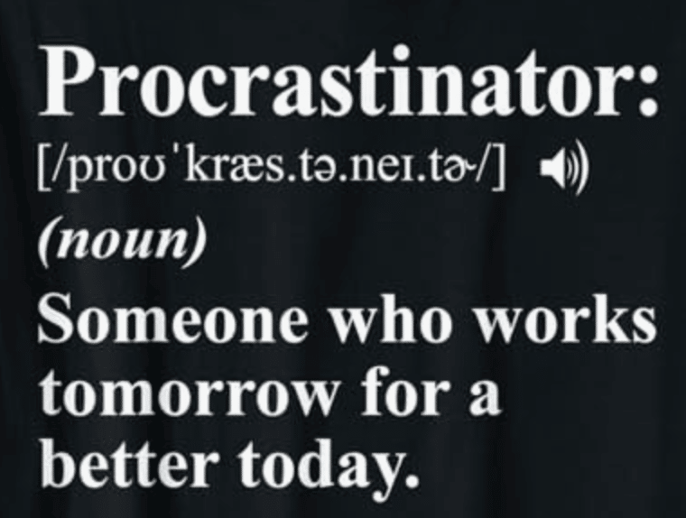 Finally, try a little self-compassion, rather than self-criticism. One study found that students who forgave themselves for procrastinating on a first exam subsequently procrastinated less on the second one. But students who were hard on themselves showed no such improvement. Why? Because self-criticism triggers shame and anxiety — which reinforces the procrastination loop. So take it easy on yourself, and figure out the first, small step for next time.